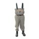 Bekväma andningsvadare med integrerad stövel i EVA. Rock Grip sula, rymlig bröstficka , just erbart bälte samt två D-ringar framtill för fäste av accessoarer.