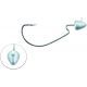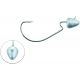 Svartzonker Offset Bismuth jiggskalle är en så kallad "weedless jiggskalle" med en koniskt formad skalle på en offsetkrok som lätt tar sig fram i gräs och vegetation. Öglans placering, med öppningen pekandes framåt, ger ditt bete en livligare gång samt lämpar sig utmärkt om du vill rigga på ett chatter-blad.